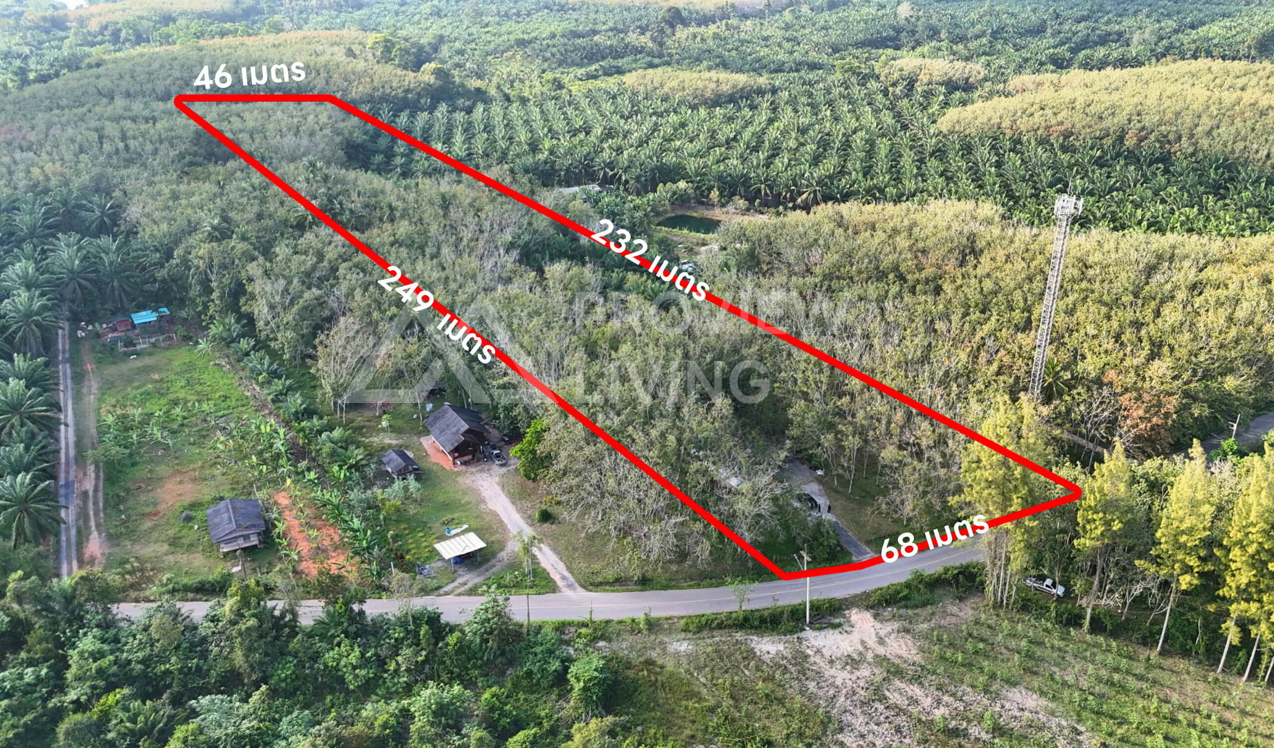 | รายละเอียด | ขนาดและรูปแปลง ▪ ที่ดินขนาด 8 ไร่ 58 ตารางวา ▪ หน้ากว้างประมาณ 68 ม. | ลึกประมาณ 250 ม. ▪ รูปแปลงสวย วางผังง่าย แบ่งโซนชัด . ภายในแปลงประกอบด้วย ▪ บ้านพักอาศัย 2 ห้องนอน 2 ห้องน้ำ ▪ สวนยางอายุประมาณ 20 ปี |