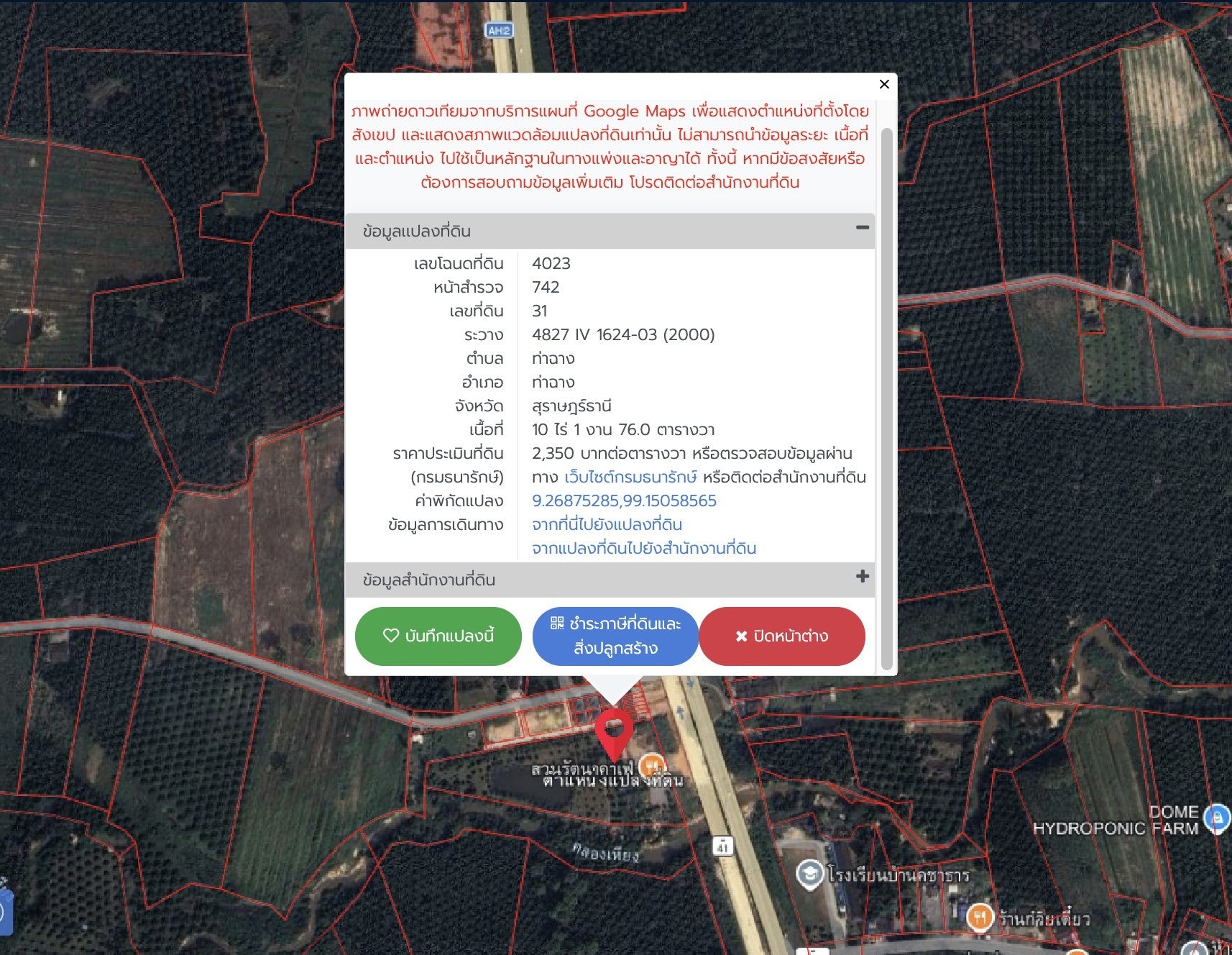 | ขนาดที่ดิน | 10 ไร่ 1 งาน 76.0 ตารางวา |
