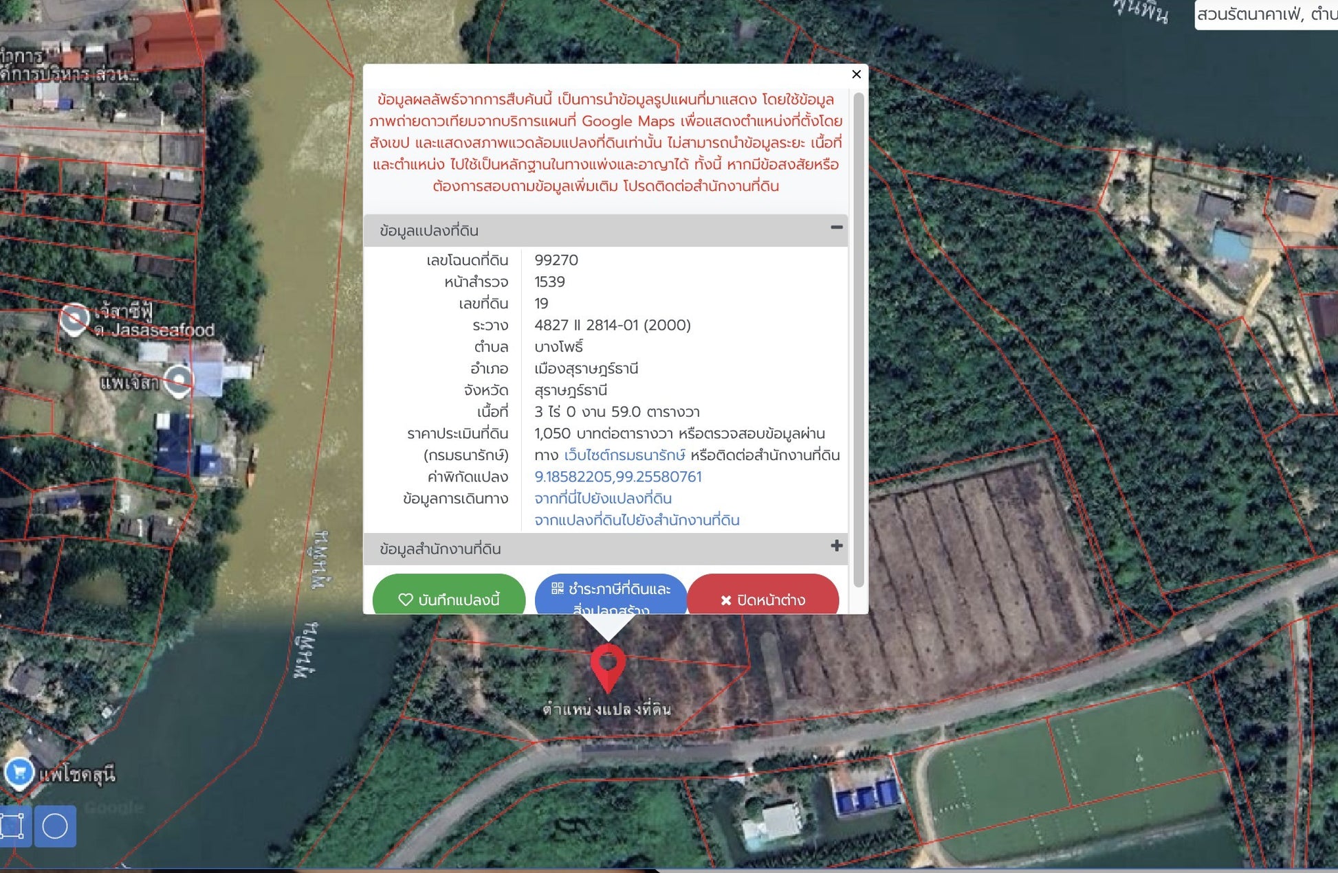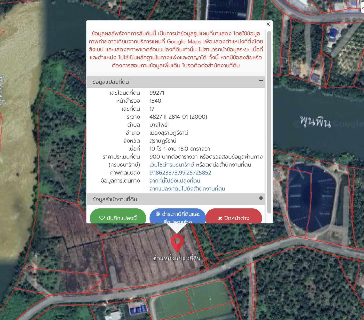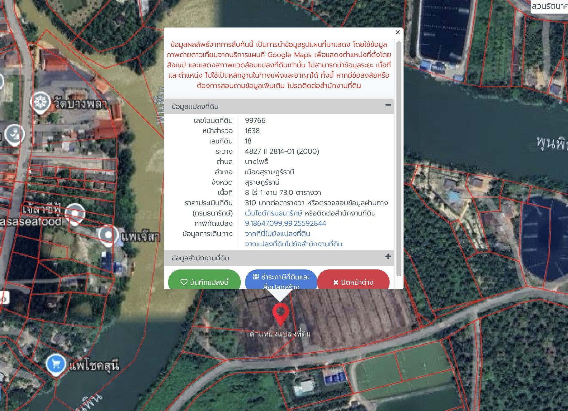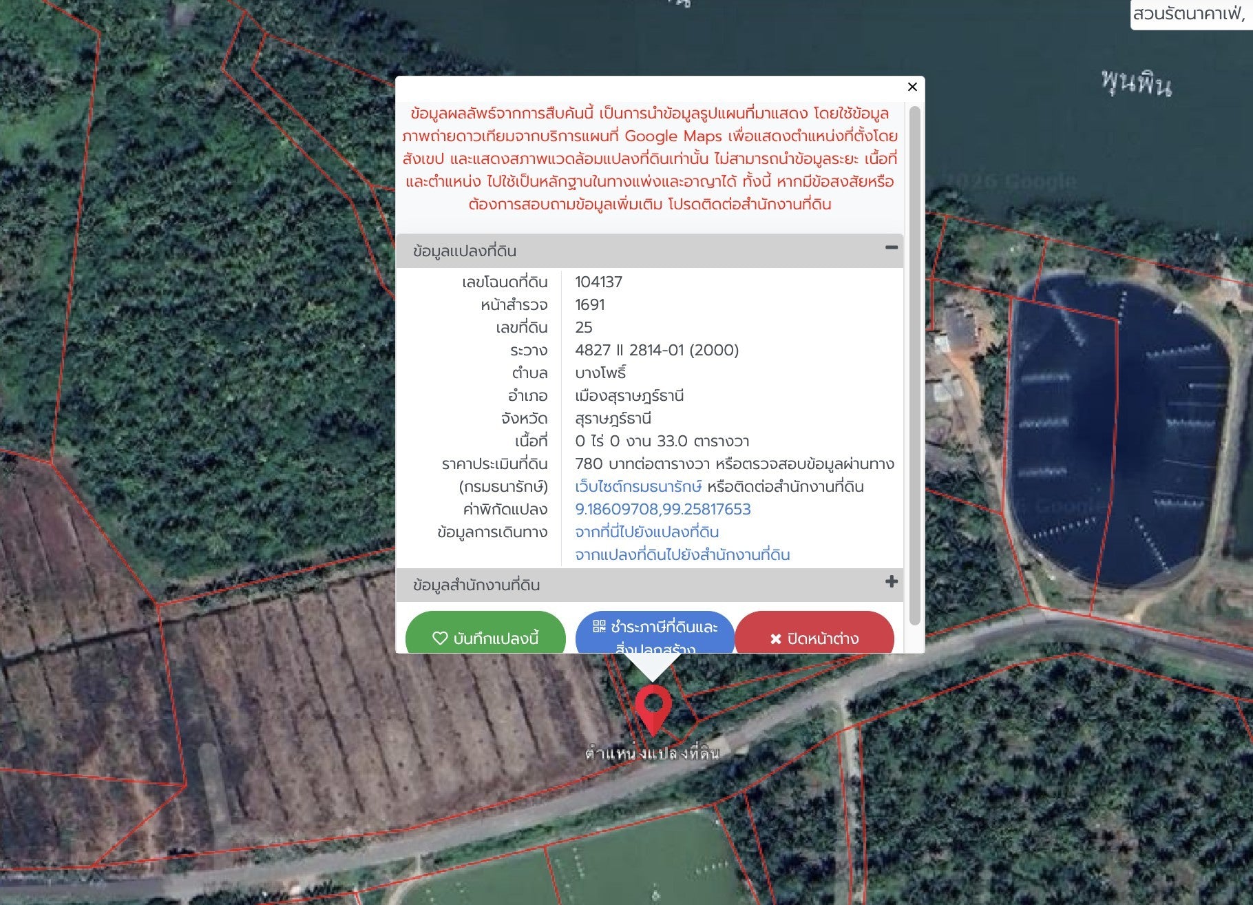 หน้าสำรวจ 1691 เลขที่ดิน 25 ระวาง 4827 II 2814-01 (2000) หน้าสำรวจ 1539 เลขที่ดิน 19 ระวาง 4827 II 2814-01 (2000) หน้าสำรวจ 1638 เลขที่ดิน 18 ระวาง 4827 II 2814-01 (2000) |